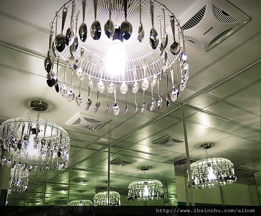 洗手間裡頭的燈具居然是風扇加湯匙耶
